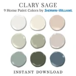 Our Sherwin Williams Clary Sage Color Palette guide is a 100 page digital download of 3 PDFs (no physical product will be sent) that will help you make quick and easy color choices with complementary colors.