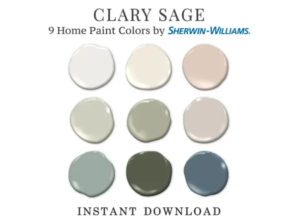 Our Sherwin Williams Clary Sage Color Palette guide is a 100 page digital download of 3 PDFs (no physical product will be sent) that will help you make quick and easy color choices with complementary colors. If you are undecided about paint colors and need the guidance of a professional architect, this color palette will be an ideal option for you. With this guide, transform your living space into a perfect harmony of calm and elegance.