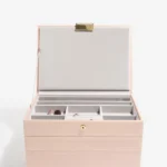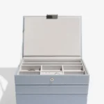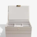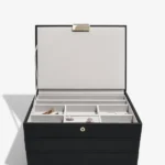 The 3-piece set is perfect for collections of all sizes, offering dedicated compartments to store necklaces, rings, earrings, watches, and more – all kept safe and in order.
