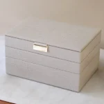 Keep your jewelry beautifully organized and tangle-free with our iconic Classic Jewellery Box – a best-selling storage solution loved for its elegant functionality. This stackable jewelry box features a smart modular design: simply lift off each layer to access your pieces with ease, and expand your storage by adding more layers as your collection grows.