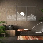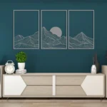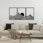 Bring the beauty of nature into your home with this Mountain and Sun Metal Wall Art Set. Featuring a minimalist design of mountain ranges and sun scenes, this modern 3-piece panel set adds a calming, boho-inspired touch to any space.